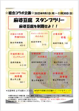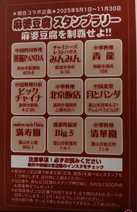 月とパンダでは、冷たい麻婆豆腐(計¥1500以上)、広東風麻婆豆腐(バル営業のみ)が対象商品です。